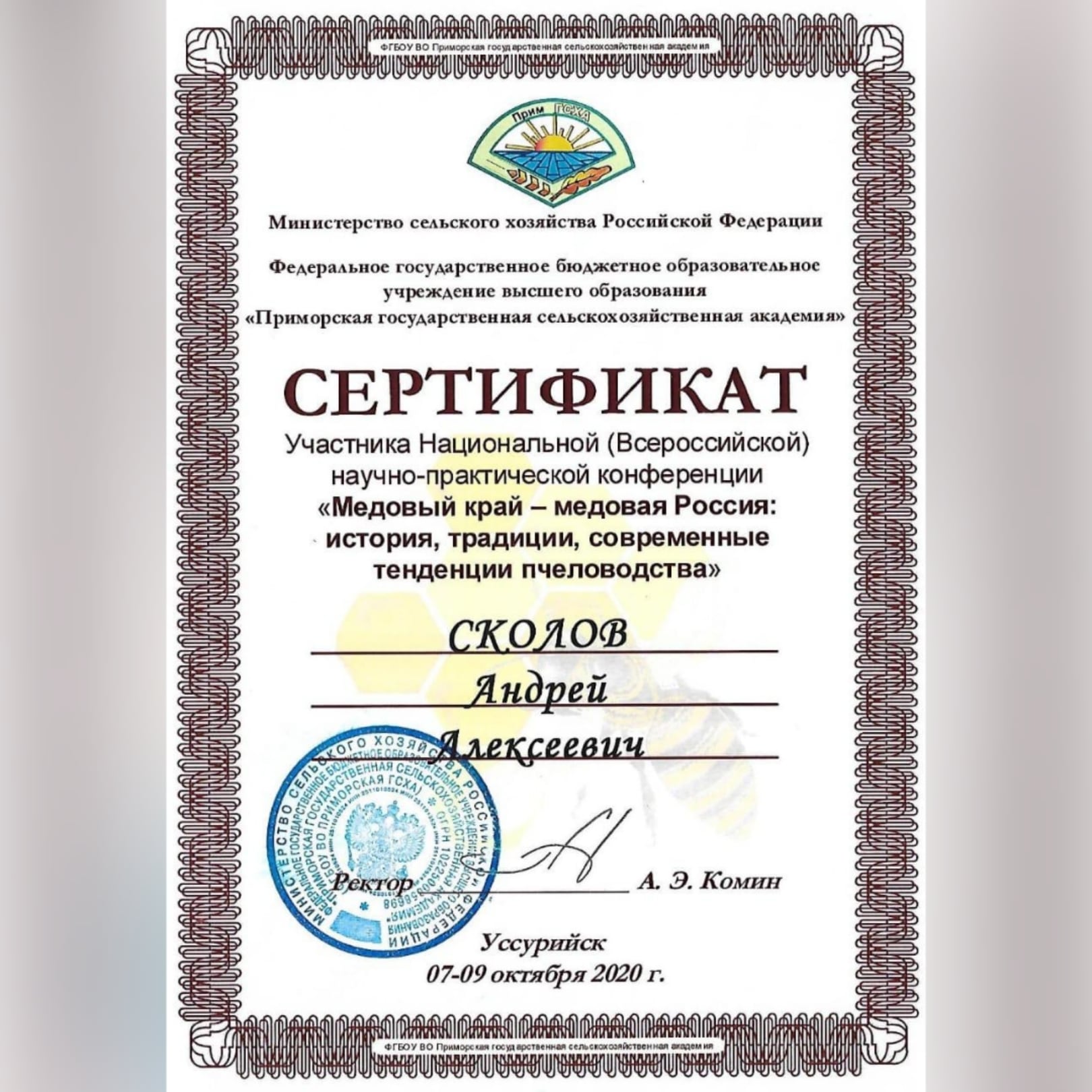 アンドレイさんの蜂蜜は毎年行われる沿海地方の蜂蜜コンクールにて「ベスト養蜂家」として高く評価されています。