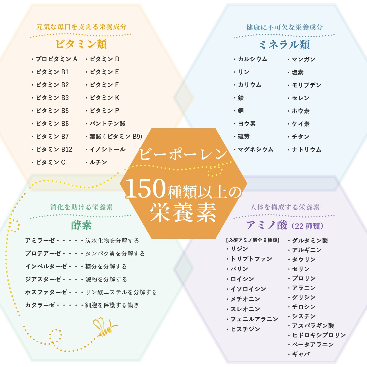 ビーポーレンに含まれるさまざまな栄養素は細胞の新陳代謝を盛んにしてくれ大人だけでなく子供の成長や発達をサポートしてくれます。是非ご家族の皆様毎日のサプリメントの代わりにお召し上がりください。